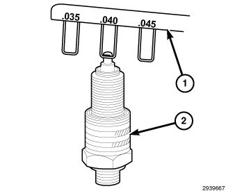 1. Check and adjust the spark plug gap with a gap gauging tool (1) Spark Plug Specifications.