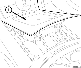 3. Position the module and console tray assembly into the vehicle and connect the electrical connectors (1).