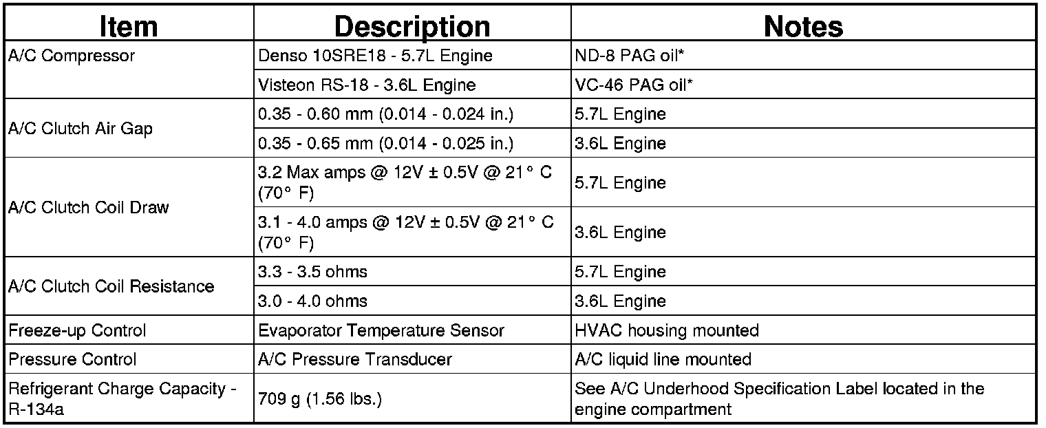 *Always use the type of PAG oil listed for the model being serviced. See A/C Underhood Specification Label located in the engine compartment. Do not mix different types of PAG oils