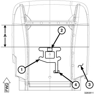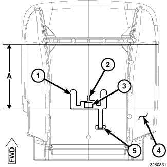 1. Position the Occupant Detection Sensor (ODS) mat (1) on the seat cushion foam with the front edge of the mat positioned 140 millimeters (5.51 inches) (Distance A) rearward from the back edge of the forward crimp channel in the seat cushion foam (3).