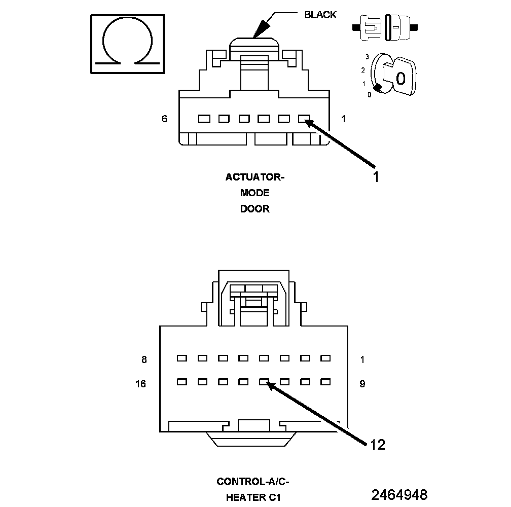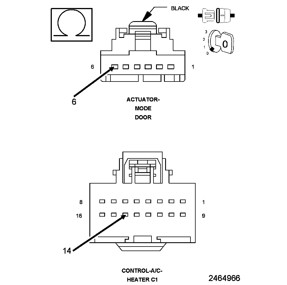 1. Measure the resistance of the (C34) Common Door Driver circuit between the A/C Heater Control C1 harness connector and the Mode Door Actuator harness connector.