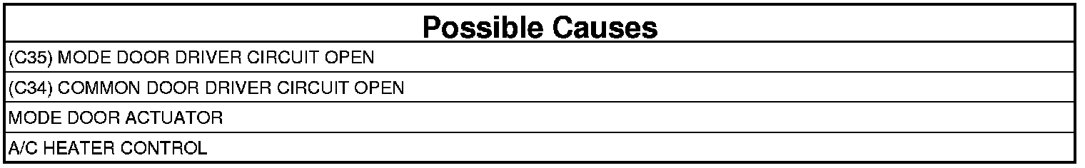 - Repair the (C35) Mode Door Driver circuit for an open or high resistance.