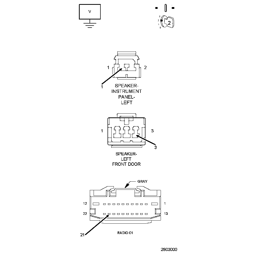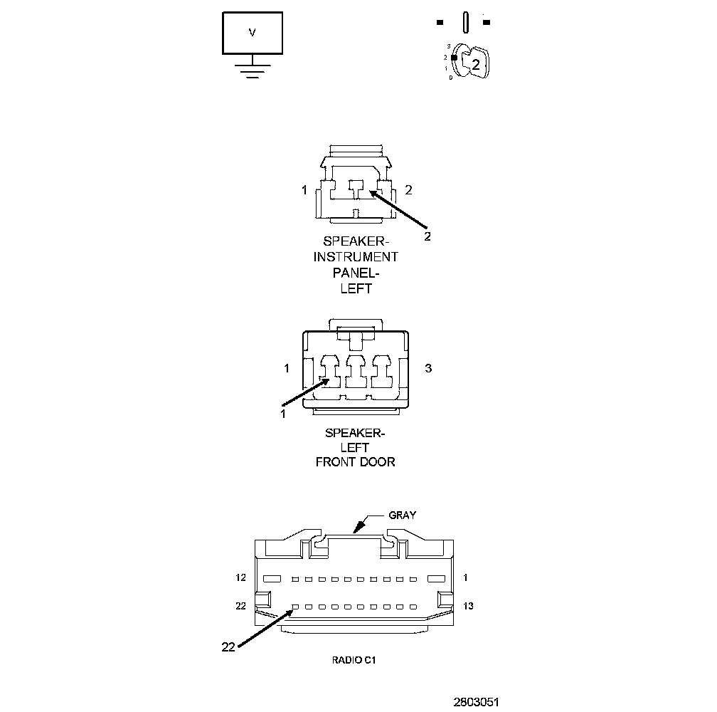 2. CHECK FOR VOLTAGE ON THE (X201) LEFT FRONT SPEAKER (+) CIRCUIT