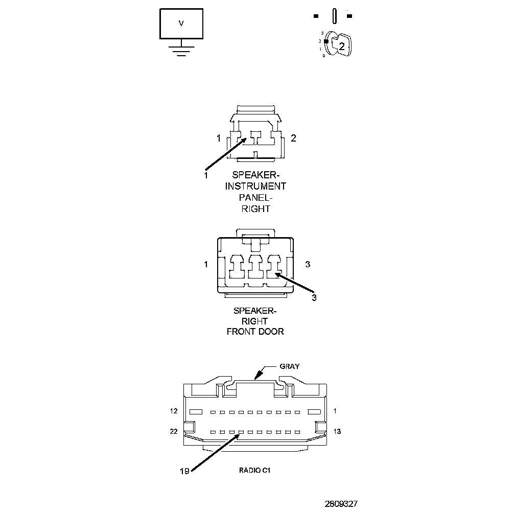 1. Measure the voltage between ground and the (X292) Right Front Door Speaker (-) circuit.