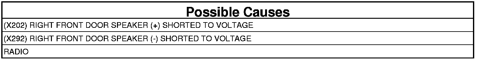 - Repair the (X202) Right Front Door Speaker (+) circuit for a short to voltage.