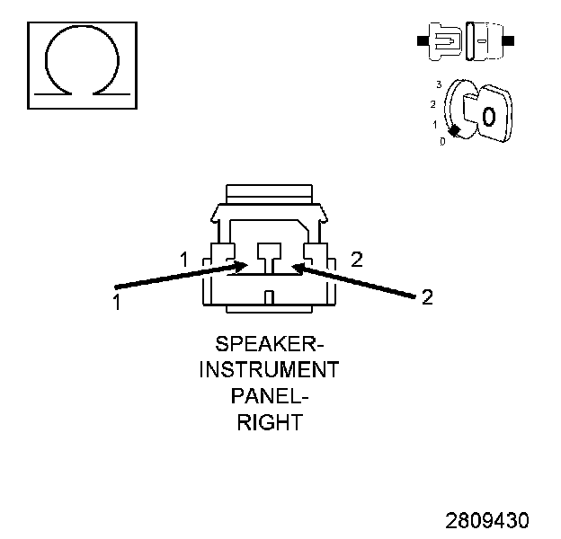 NOTE: The graphic shows the connector for reference only. Measure between the speaker terminals.