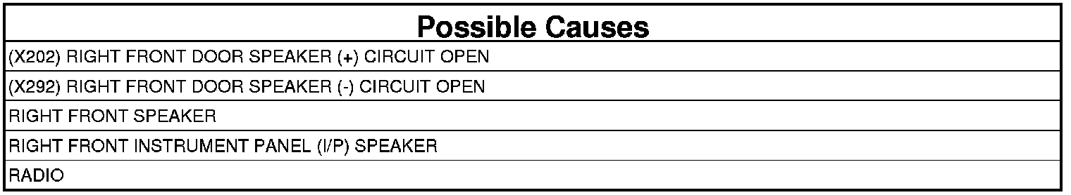 - Repair an open in the (X202) Right Front Door Speaker (+) circuit.