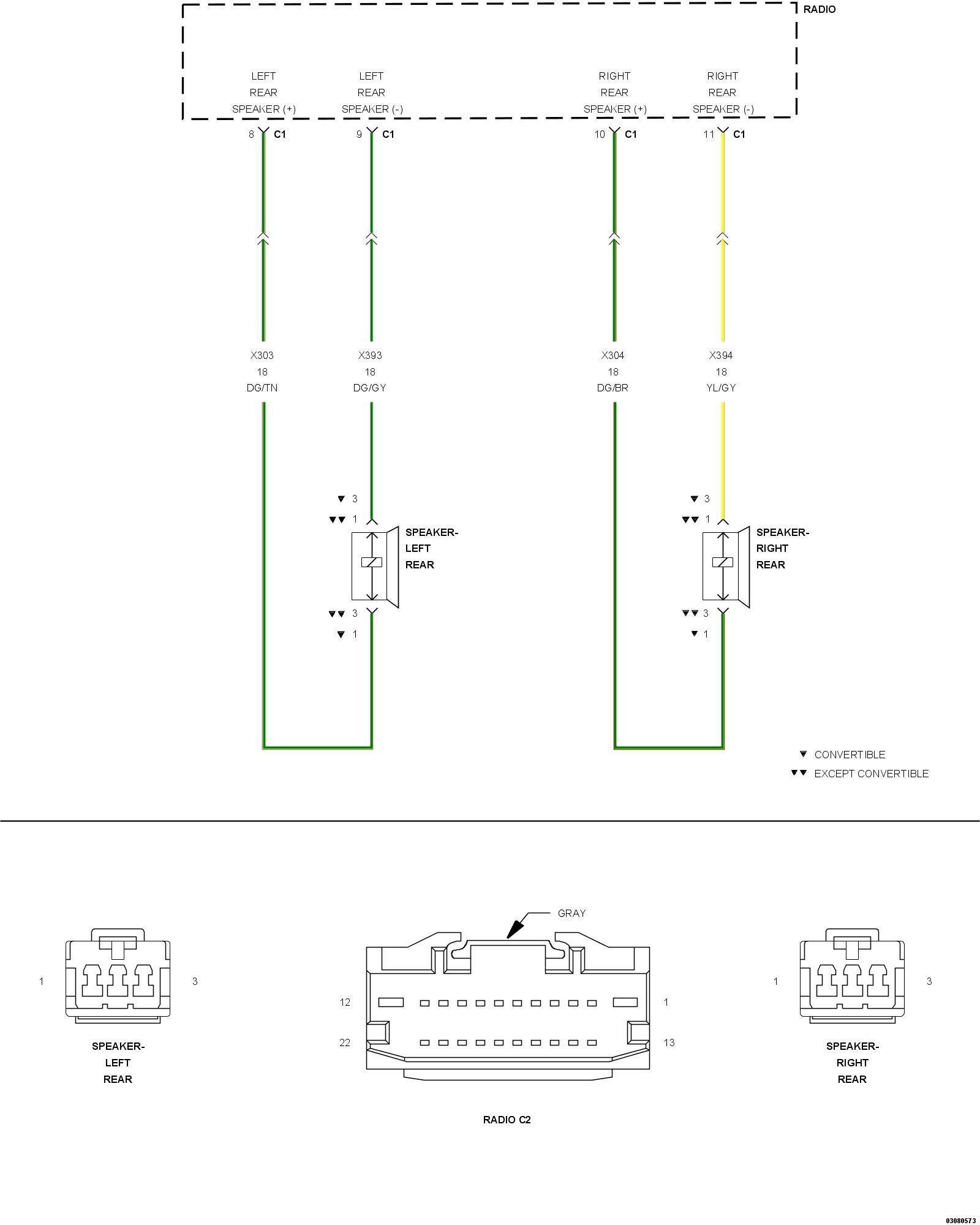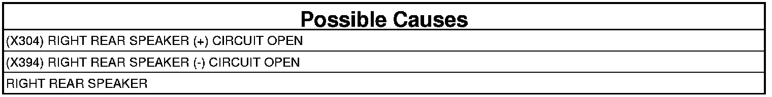 - Repair an open in the (X304) Right Rear Speaker (+) circuit.