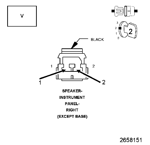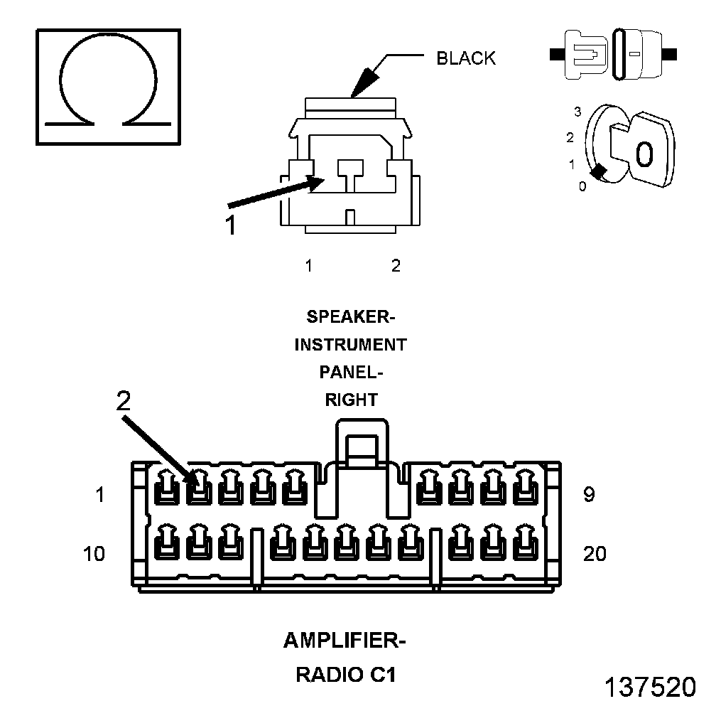 5. With a voltmeter set to read in A/C voltage, measure the voltage of the Amplified Right I/P Speaker circuits in the Right Instrument Panel Speaker harness connector.