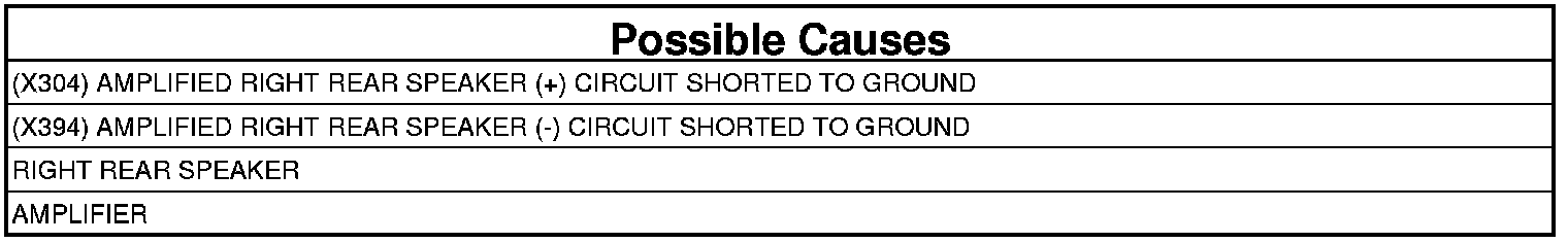 - Repair the (X304) Amplified Right Rear Speaker (+) circuit for a short to ground.