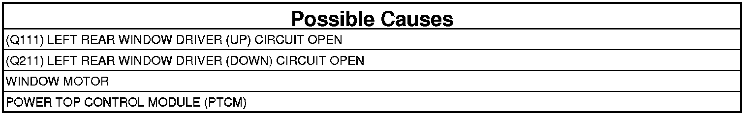 - Repair the (Q211) Left Rear Window Driver (Down) circuit for an open.