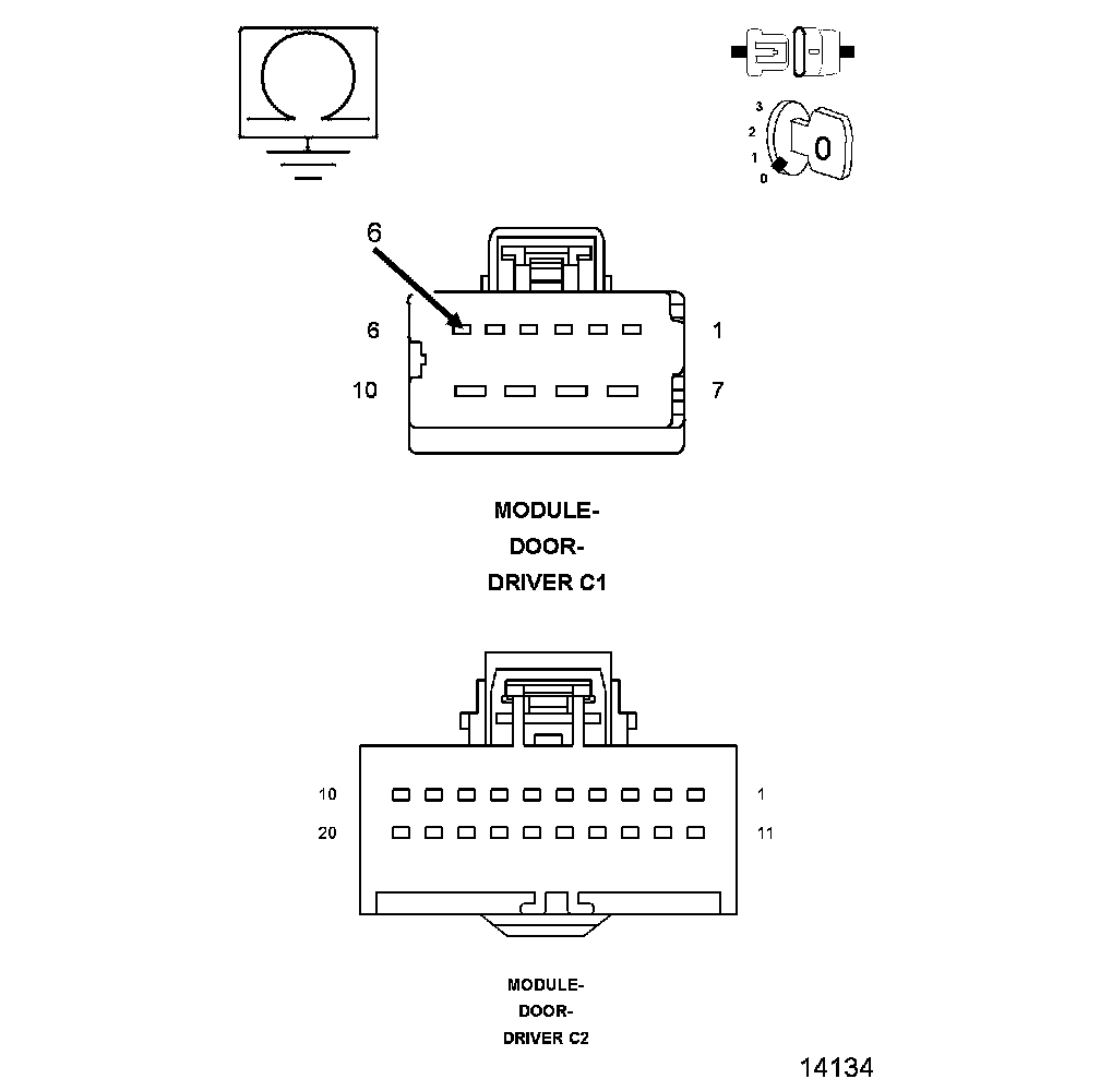 2. Disconnect the Driver Door Module C1 and C2 connectors.