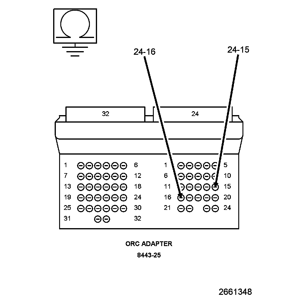 5. Measure the resistance of the (R44) Passenger Squib 1 Line 1 circuit between the SRS Load Tool Adaptor cavity 24-15 and ground.