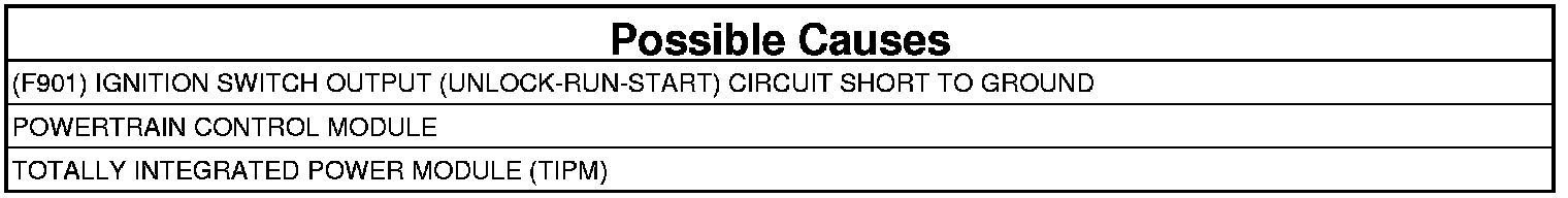 (F901) Fused Ignition Switch Output (Unlock-Run-Start) circuit low.