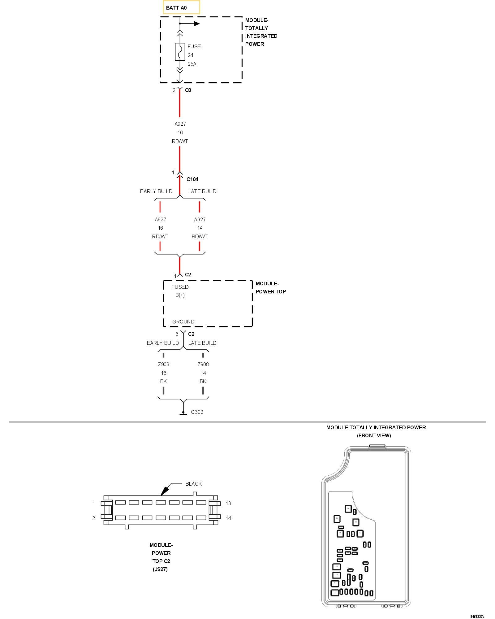 - Repair (A927) Fused B(+) circuit for an open from the TIPM to the PTCM C2 connector.