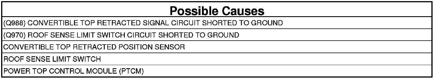 - Repair the (Q988) Convertible Top Retracted Signal circuit for a short to ground.