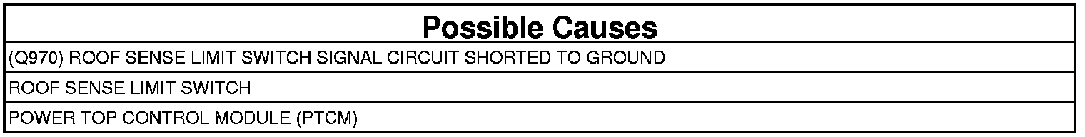 - Repair the (Q970) Roof Sense Limit Switch Signal circuit for a short to ground.