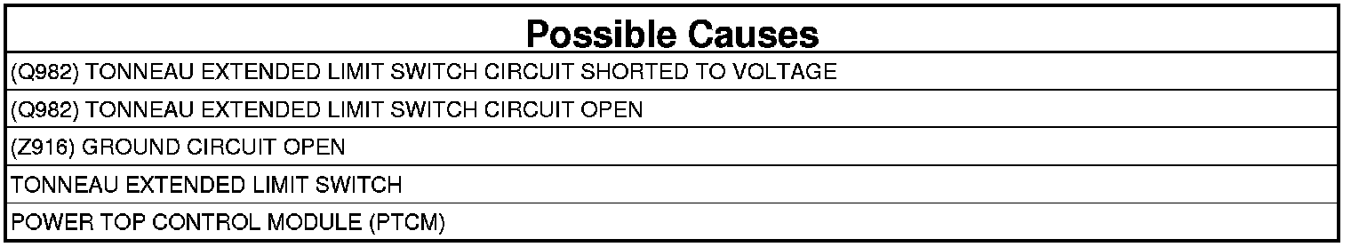 - Repair the (Q982) Tonneau Extended Limit Switch Signal circuit for a short to voltage.