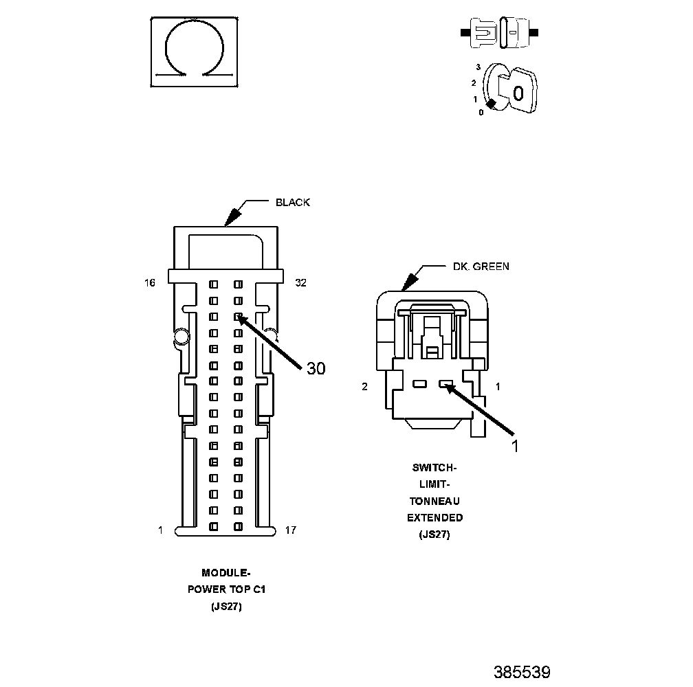 - Correlation - These DTCs specifically relate two switches in a subcomponent (deck lid, tonneau drive, header latch, etc.) of the convertible top system. Both of the specified switches will be active in one position of the subcomponent (extended, retracted, open, closed, etc.). The switch that will not change state while attempting to operate the convertible top system, is the most likely area for attention.