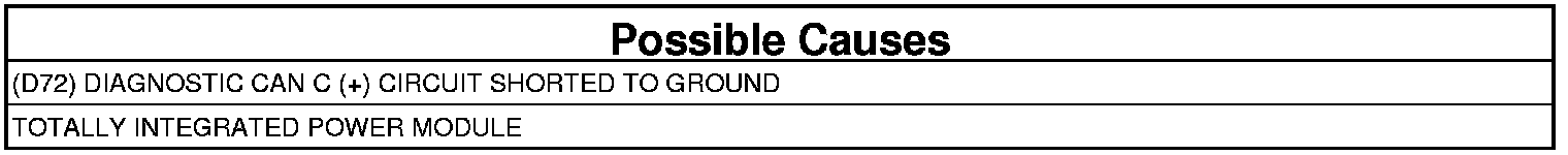 - Repair the (D72) Diagnostic CAN C (+) circuit for a short to ground.
