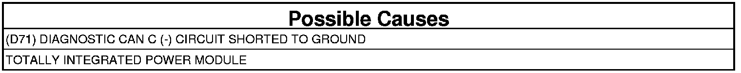 - Repair the (D71) Diagnostic CAN C (-) circuit for a short to ground.