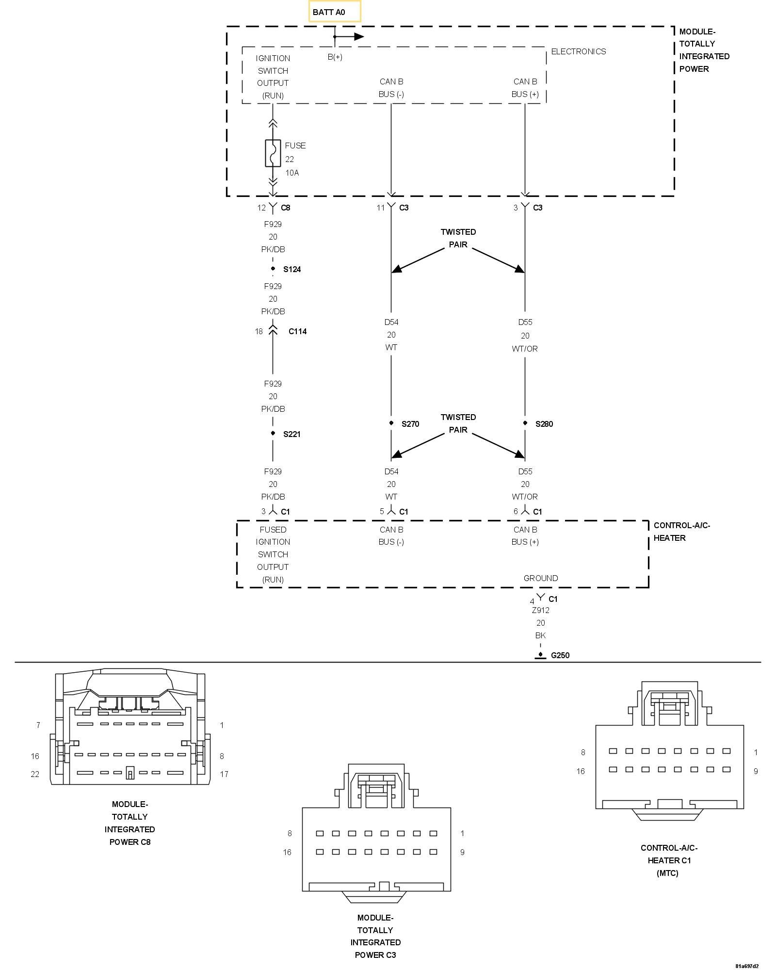 - Repair the (D55) and (D54) CAN B Bus circuits for an open. Inspect the connector for damage.
