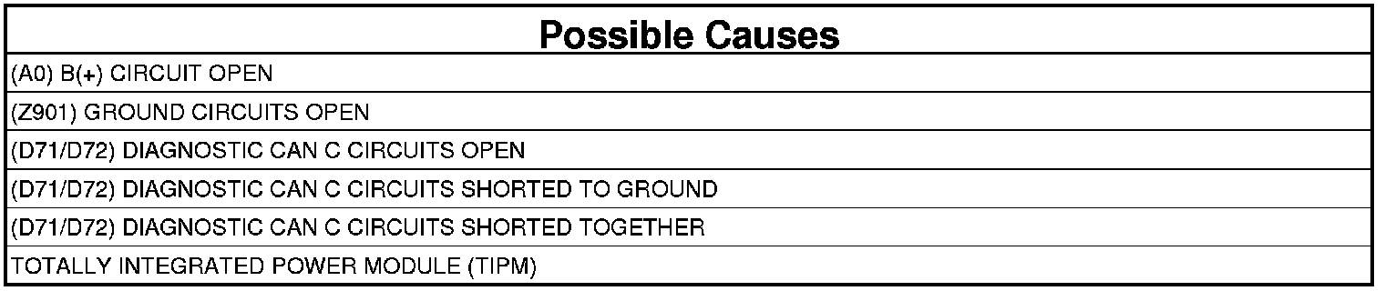 - Repair the (D72) Diagnostic CAN C (+) circuit for a short to ground.