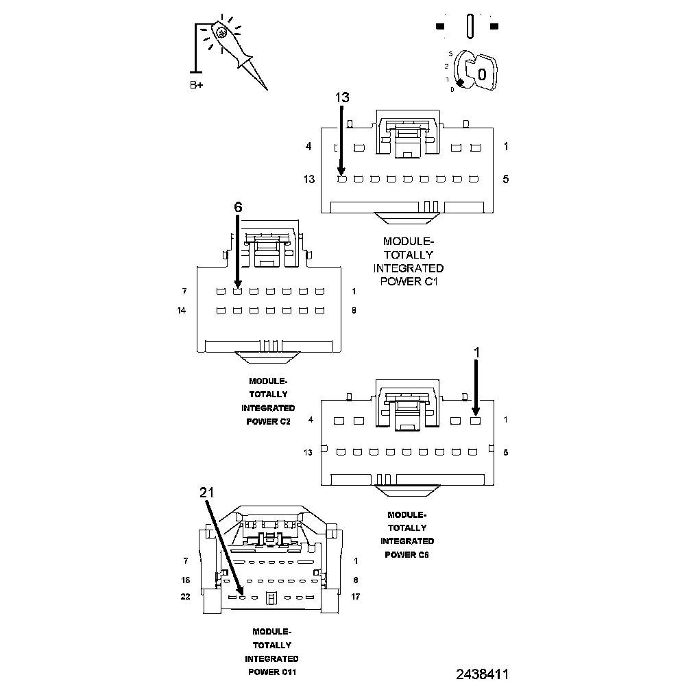 2. Disconnect the TIPM C1, C2, C6, and C11 harness connectors.