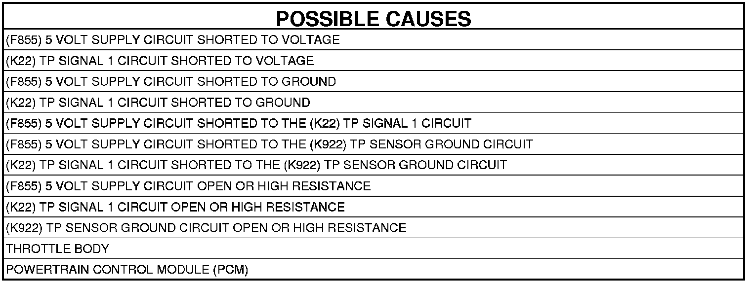 - Repair the (F855) 5 Volt Supply circuit for a short to the (K922) TP Sensor Ground circuit.