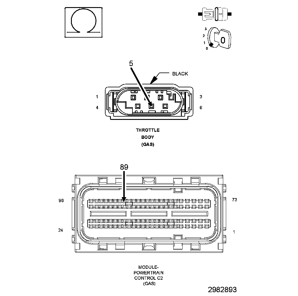 1. Using the wiring diagram/schematic as a guide, inspect the wiring and connectors between the Throttle Body and the Powertrain Control Module (PCM).