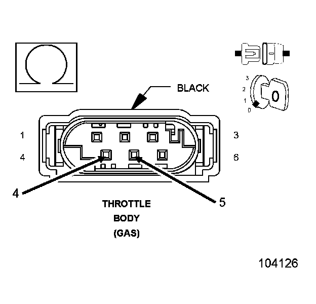 1. Measure the resistance between the (K22) TP Signal 1 circuit and the (K126) ETC Motor (-) in the Throttle Body harness connector.