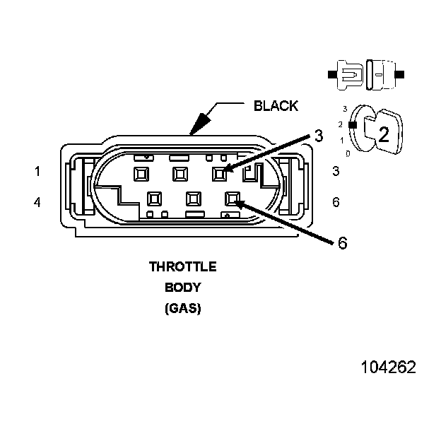 1. Measure the resistance between the (K122) TP Signal 2 circuit and the (K124) ETC Motor (+) in the Throttle Body harness connector.