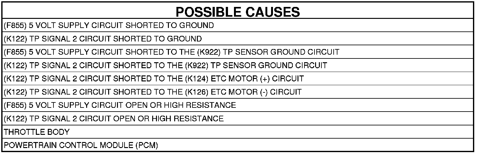 - Repair the (F855) 5 Volt Supply circuit for a short to the (K922) TP Sensor Ground circuit.