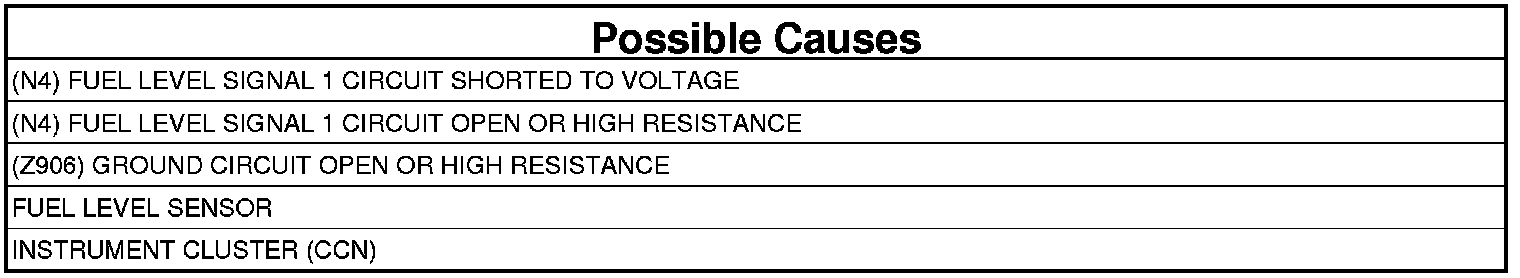 - Repair the open circuit or high resistance in the (N4) Fuel Level Signal 1 circuit.