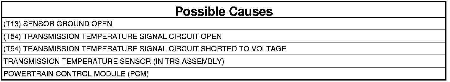 - Repair the (T54) Transmission Temperature Signal circuit for an open.