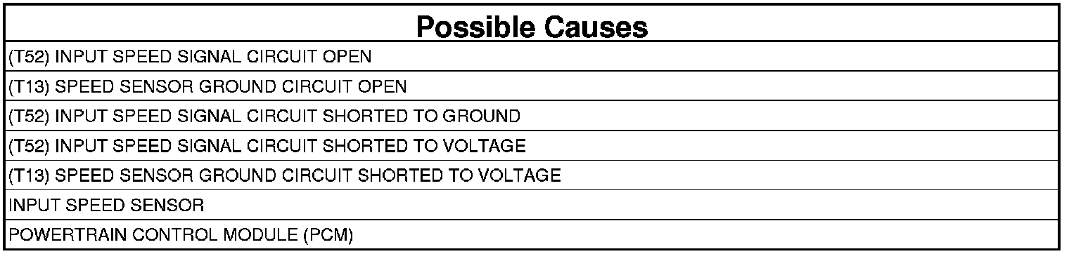 - Repair the (T52) Input Speed Signal circuit for an open.