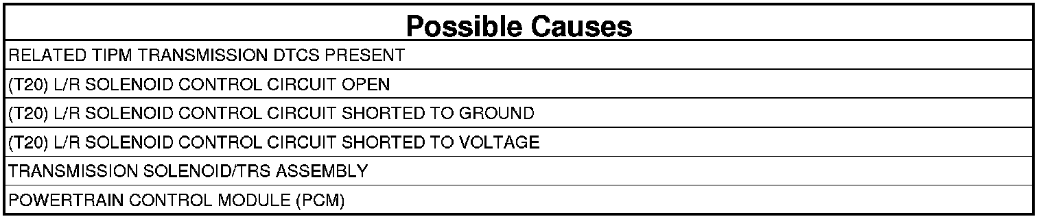 - Repair the (T20) L/R Solenoid Control circuit for a short to voltage.