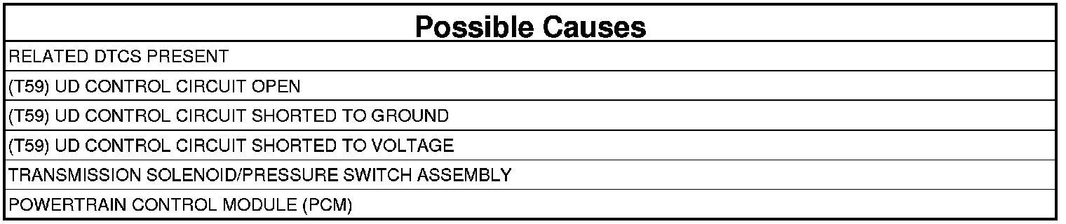 - Repair the (T59) UD Control circuit for a short to voltage.