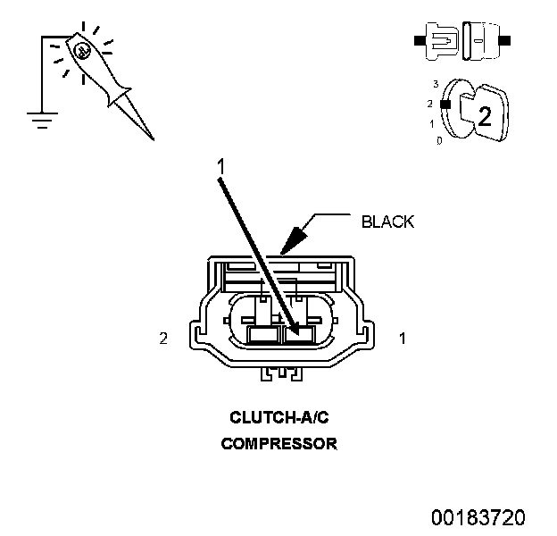 4. Using a 12-volt test light connected to ground, check the (C3) A/C Clutch Control Output circuit at the A/C Compressor Clutch harness connector.