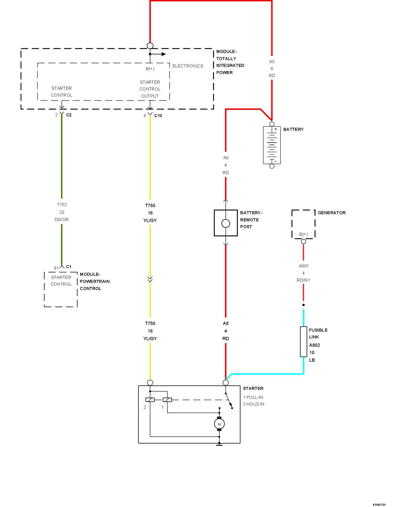 - Repair the open in the (T750) Starter Control Output circuit.