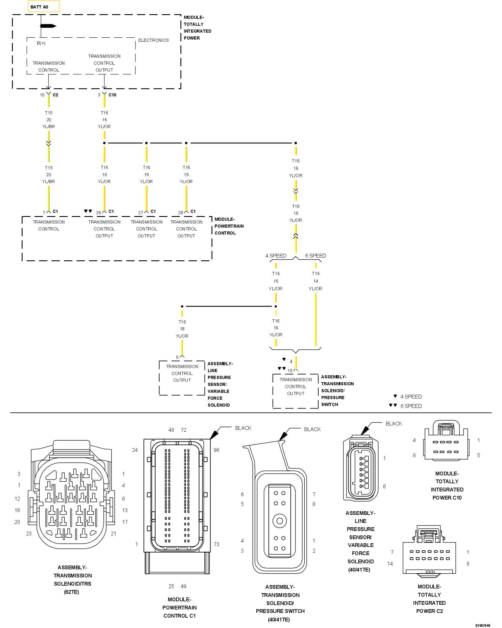 - Repair the open in the (T16) Transmission Control Output.