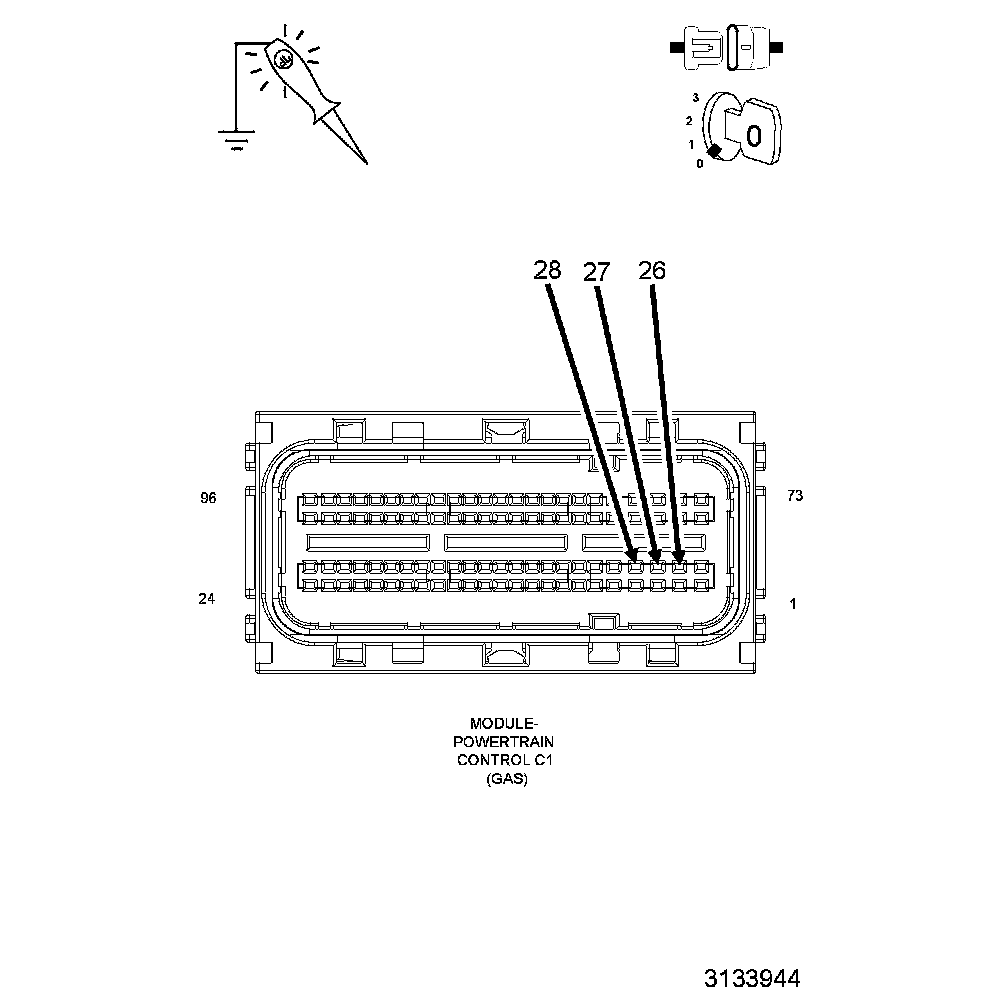 1. Ignition on, engine not running.