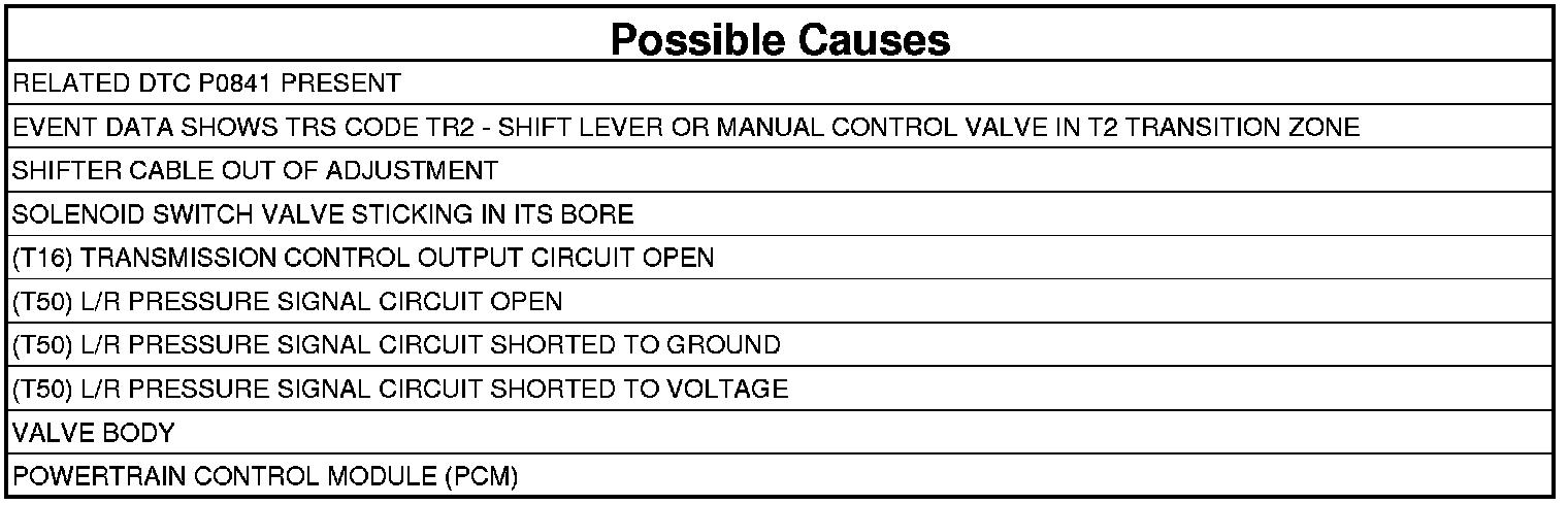 - This indicates the shift lever and the manual control valve were in the T2 transition zone between Neutral and OD. Check the shifter cable for: proper adjustment, binding, friction, improper routing, or the shifter was moved in transit. Repair as necessary.