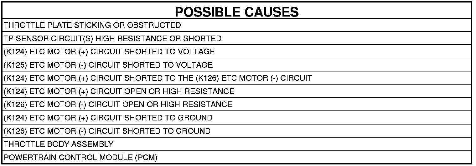 6. (K124) ETC MOTOR (+) CIRCUIT SHORTED TO THE (K126) ETC MOTOR (-) CIRCUIT