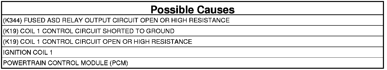 4. Using a 12-volt test light connected to ground, check the (K344) Fused ASD Relay Output circuit in the Ignition Coil 1 harness connector.