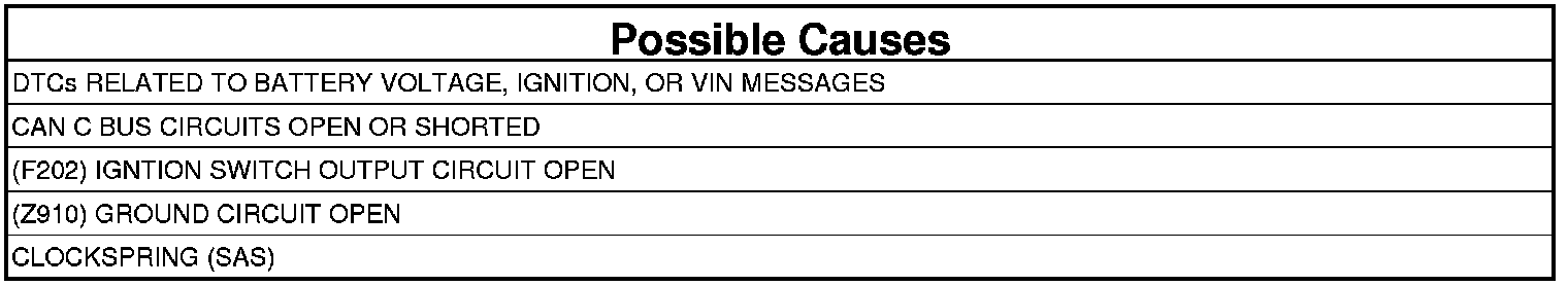 NOTE: Check for CAN C hardware electrical, Steering Angle Sensor, VIN Missing/Mismatch, battery or ignition related DTCs.
