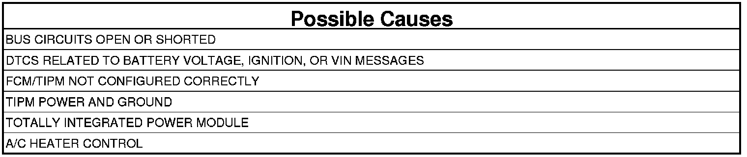 Bus messages not received from the Totally Integrated Power Module (TIPM) for three seconds.