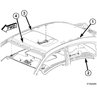 NOTE: In the event the headliner is damaged or creased during removal, it will need to be replaced with a new headliner.