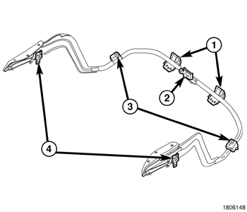5. Connect the deckbar hydraulic cylinders on both the left and right sides (3). Folding Top Hydraulic Cylinder - Installation.