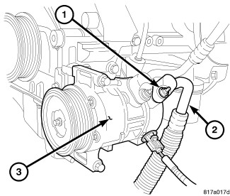 4. Connect the lower A/C suction line to the A/C compressor (3).